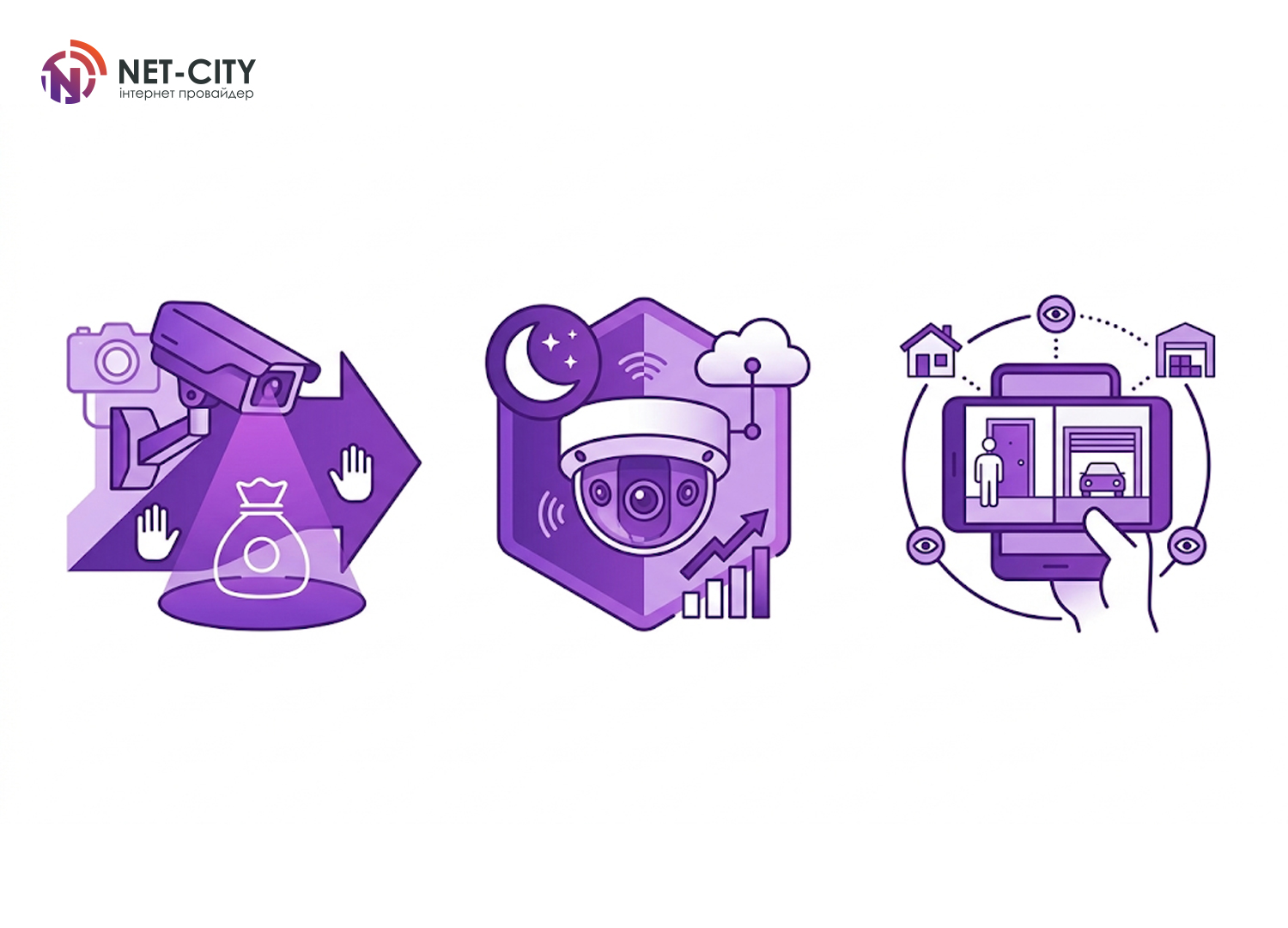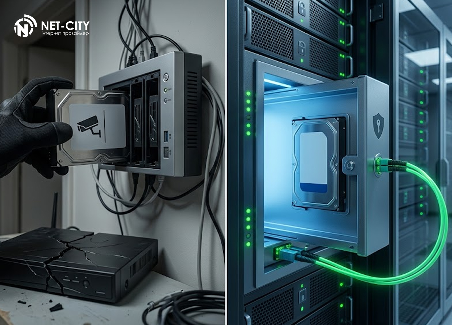 2. Хмарне зберігання або наш реєстратор у дата-центрі — це безпека, але потребує стабільного каналу зв'язку. І саме тут Net-City пропонує «два в одному»: ми самі забезпечуємо і PON-інтернет з високою швидкістю, і фізичне розміщення реєстратора в одній інфраструктурі. Відео не виходить за межі нашої захищеної мережі, що додатково забезпечує ваші дані від витоку.